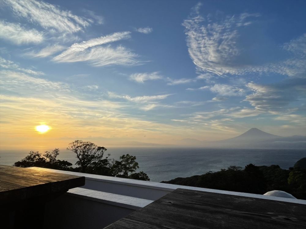 目の前に駿河湾と世界遺産富士山、そして日本一と言われる夕陽が広がる、全11室半露天風呂付きリゾートホテル。